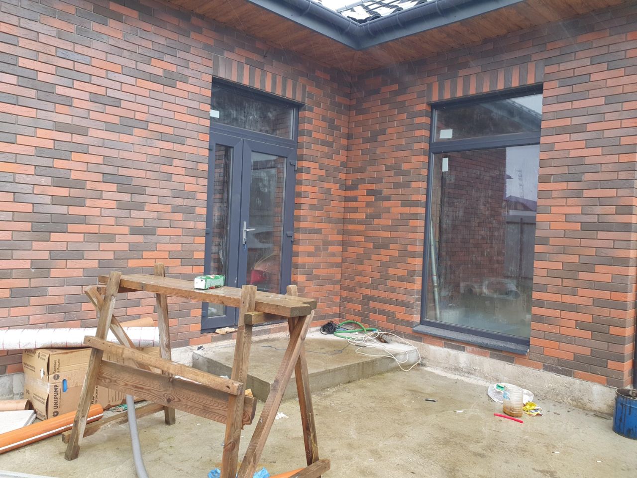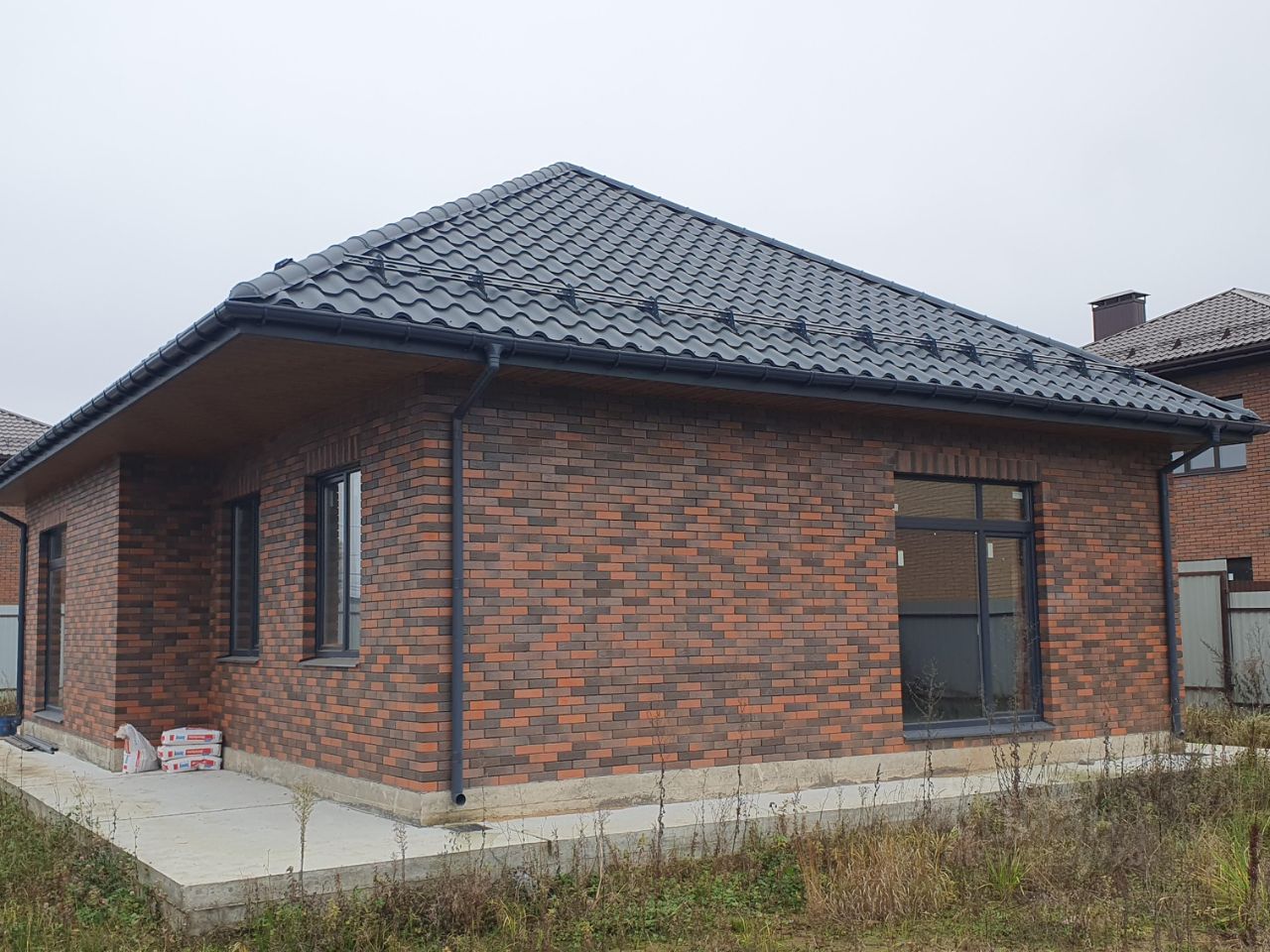 Дом из керамоблоков и фасадного глиняненного кирпича, панорамные стеклопакеты Rehau, теплые полы, нужно только покрасть или наклеить обои на ваш вкус. Мебели нет.