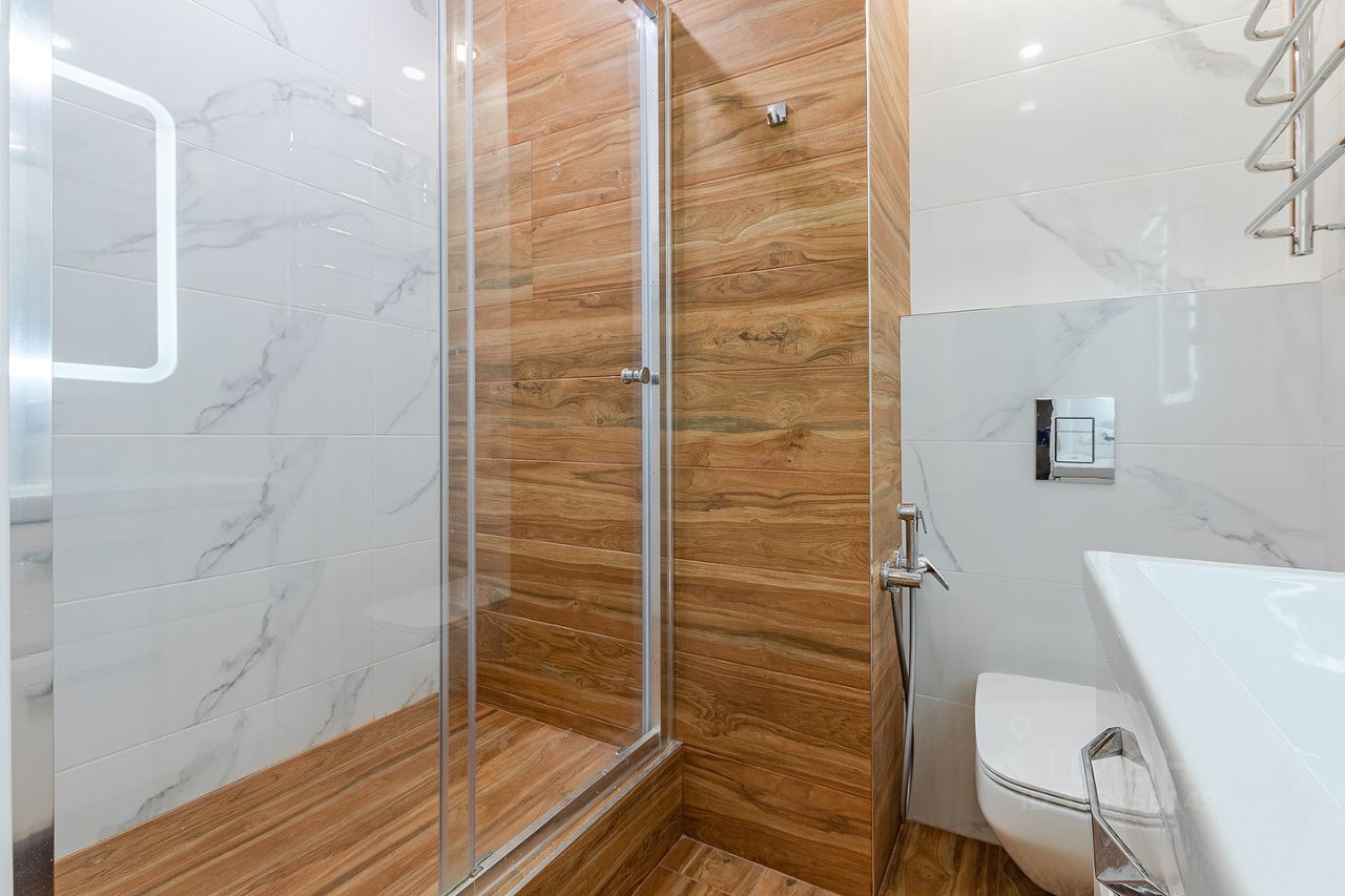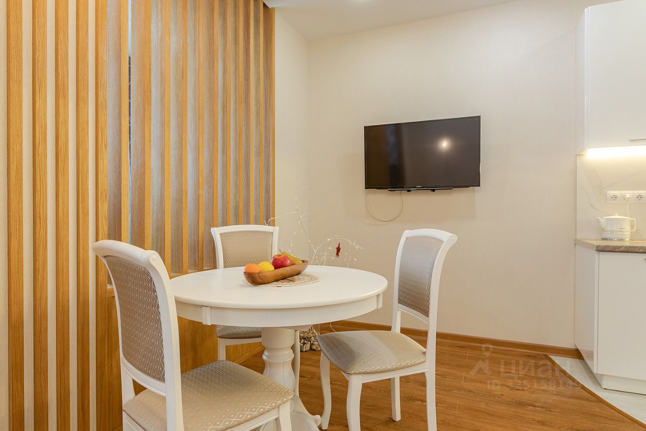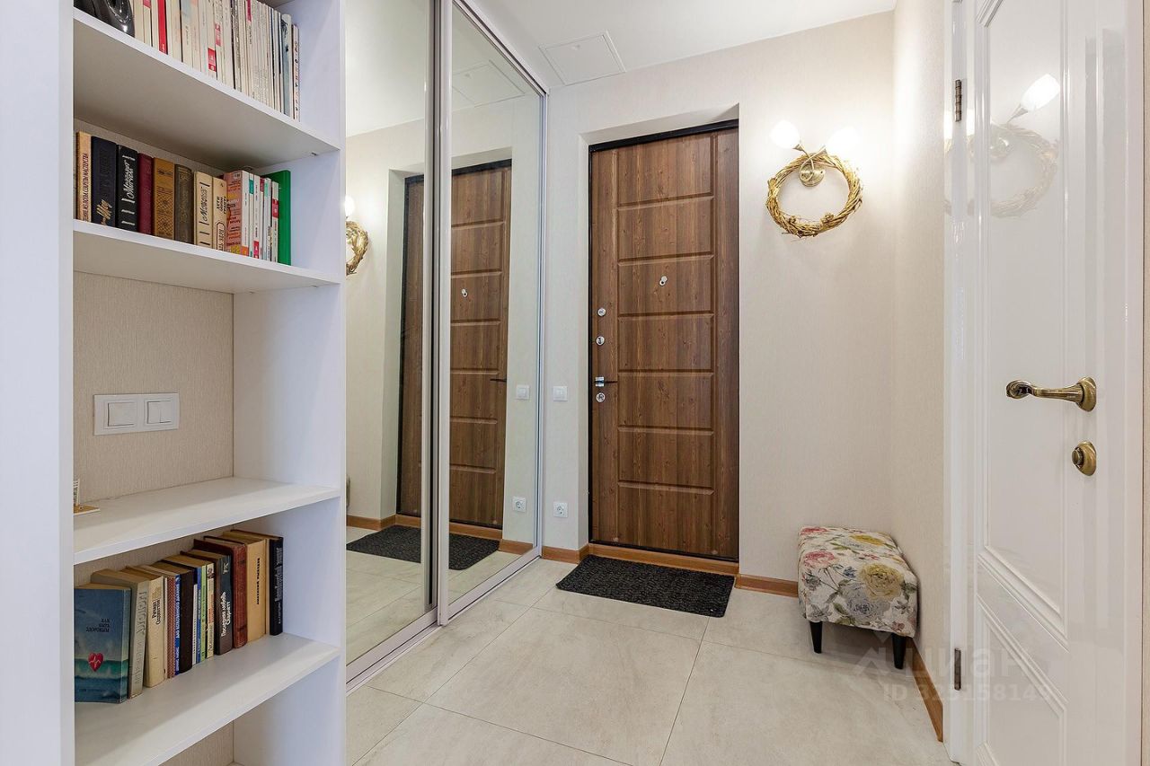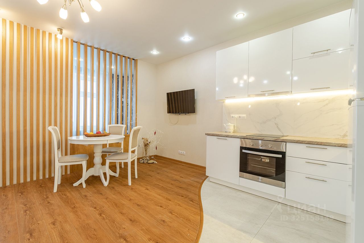 Сдается квартира площадью 46 кв.м. на 12-м этаже 46-ти этажного дома. Квартира имеет студийную планировку с зонированным пространством: кухня, гостиная, спальня и место для рабочего кабинета. В квартире есть гардеробная комната, совмещенный санузел с душем, постирочная.