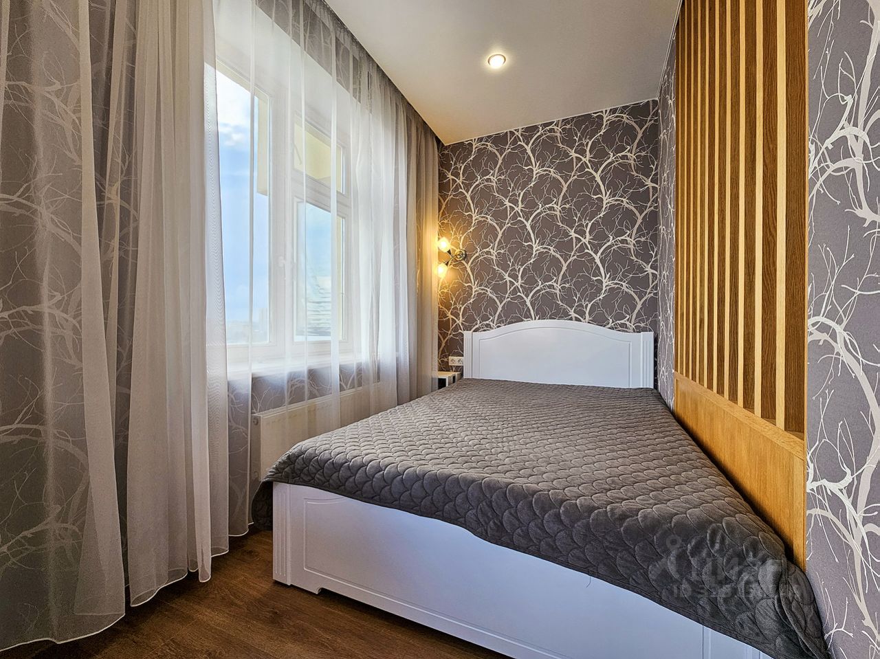 В квартире современный ремонт. Оборудована необходимой бытовой техникой и современной мебелью. Ширина кровати 140 см.
