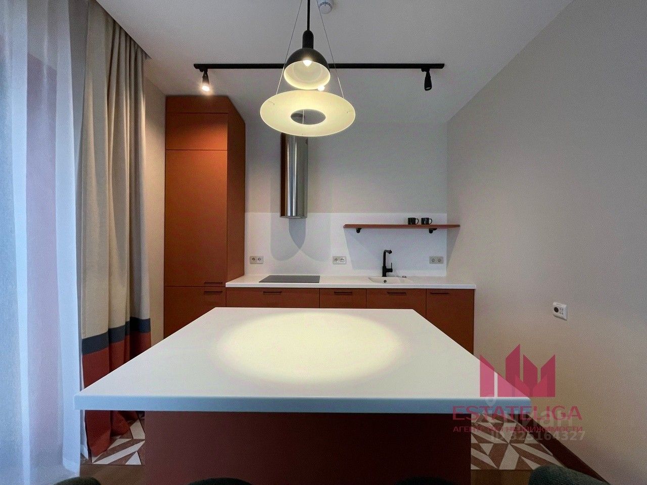 Полностью готова для проживания, имеется вся необходимая мебель. В кухонной зоне установлена качественная бытовая техника бизнес сегмента. Укомплектована индукционной плитой, есть духовой шкаф, холодильник, вытяжка, микроволновка, вместительные шкафчики, посудомоечная машина, фильтр для очистки воды. Барная стойка обеспечивает дополнительное пространство для готовки еды. Установлен кондиционер.