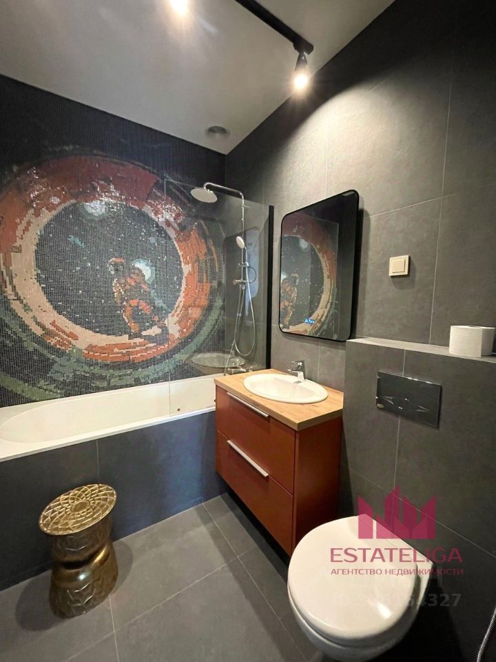 Кухонная зона с выходом на большую веранду 28м! Есть возможность поставить кресла для отдыха. Гостиная зона оборудована раскладывающимся диваном, напротив установлен Smart телевизор. Санузел с ванной, установлен гигиенический душ, зеркало с современной подсветкой. Дизайнерское решение мозаики в стиле астронавтики.