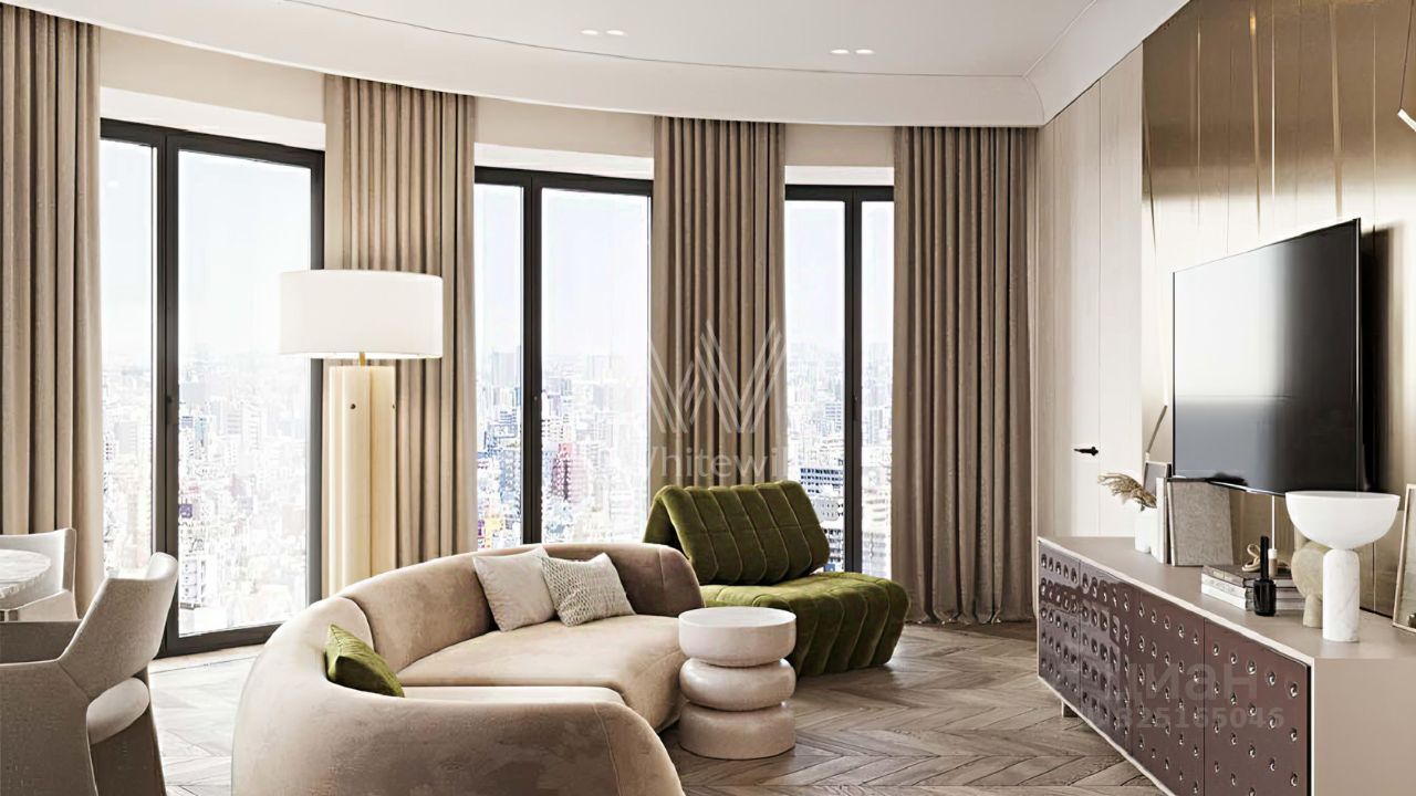 Ключевые акценты: -Масштаб для жизни: 172 м², где большие комнаты остаются функциональными, а не пустыми. -Главная сцена дома: кухнягостиная 52 м² — правильный формат для семьи и приёма гостей. -Приватность по-взрослому: мастерспальня 28 м² + отдельные комнаты для детей и работы. -Комфорт без очередей: три санузла (5,31 м² и 7,03 м² + ванная 4,91 м²). -Вид как капитал: ''Сити'', ''Украина'', МГУ — всё из одних панорамных окон.