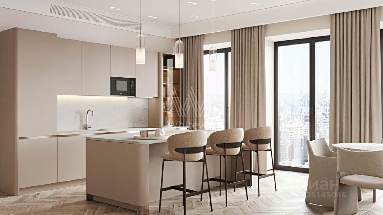 У этой квартиры ценность не только в адресе, а в том, как он читается из окон: ''Сити'' добавляет вечерний свет и энергию, ''Украина'' — архитектурную уверенность, МГУ — горизонт и масштаб. Этот вид работает как статусный маркер без лишних слов, потому что его понимают свои.