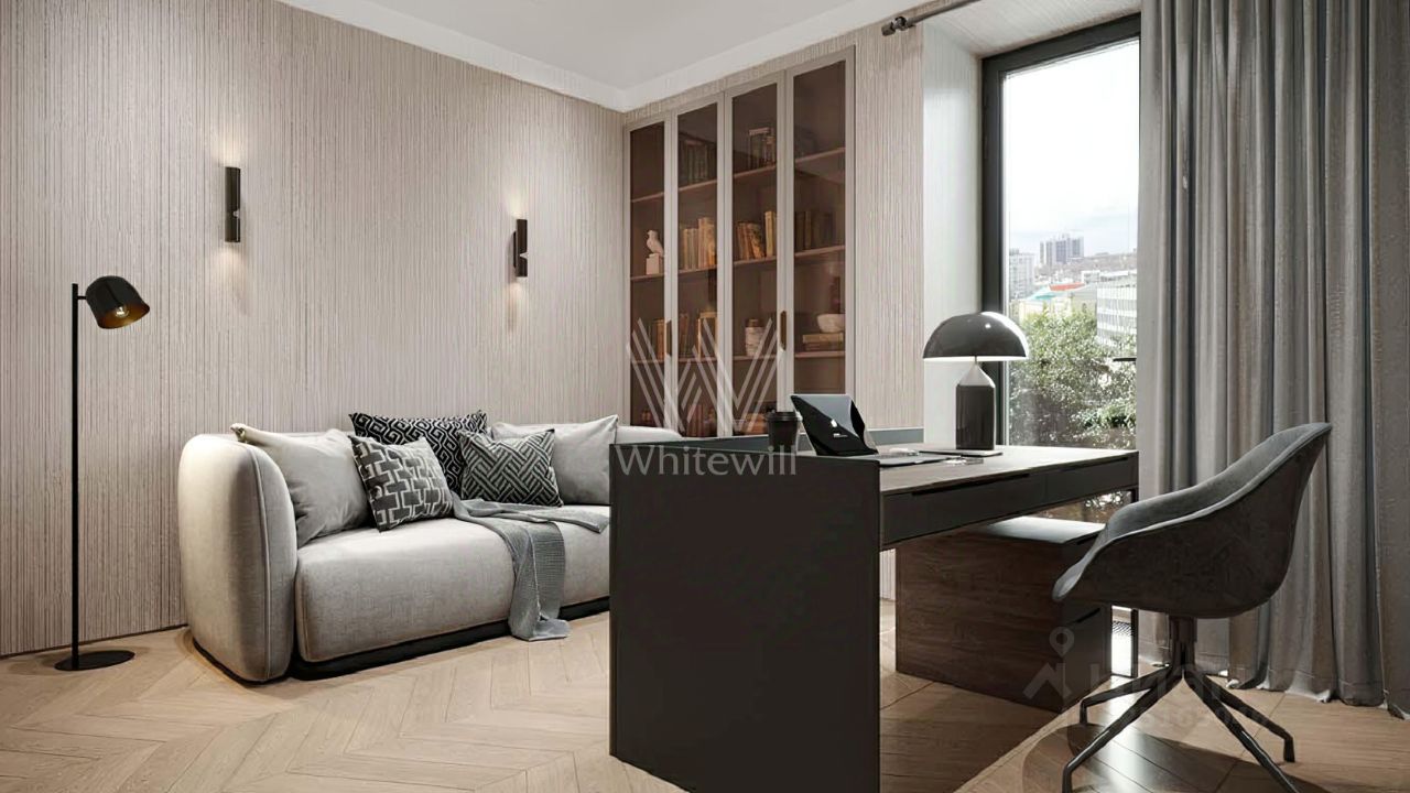 Планировка собрана под семейный сценарий и приватность: две спальни, детская и кабинет дают каждому свой ритм без пересечений. Мастерспальня 28 м² воспринимается как отдельная территория покоя, а кабинет 16 м² — как пространство решений, не требующее компромиссов по тишине и концентрации.