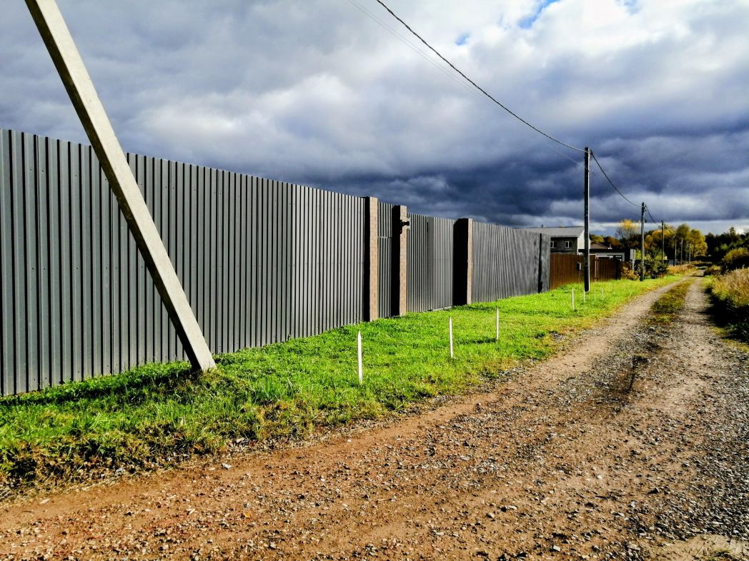 Вторая линия от леса, не проездная тихая дорога, трехметровый забор (профлист С20, толщиной 0,45 мм, забетонированные столбы, въездная группа из 3 кирпичных столбов), который прекрасно защищает от лишних взглядов из соседских домов или проезжающих мимо водителей грузовиков с доставкой, а также от пыли и соседских животных. Под забором или воротами нет возможности пролезть. Зимой дороги чистят от снега.