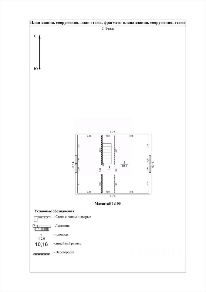 Высота первого этажа - 2,85 м Высота второго под конек - 3,10 м