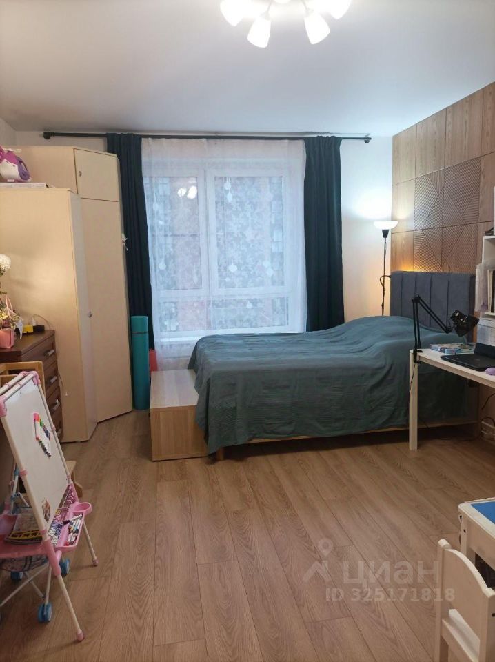 В квартире ремонт от застройщика. Комната светлая за счёт большого окна в комнате. Вид из окна приятный.