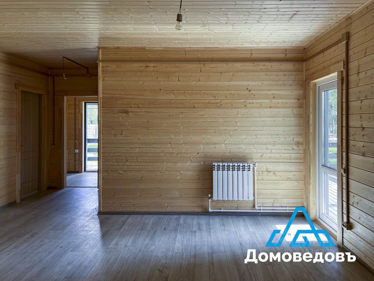 Дом построен по каркасной технологии из пиломатериалов камерной сушки с утеплением 150 мм (стены) и 200 мм (пол и потолок).