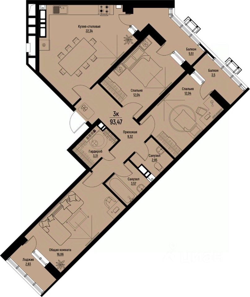 Общая площадь93,47 м2