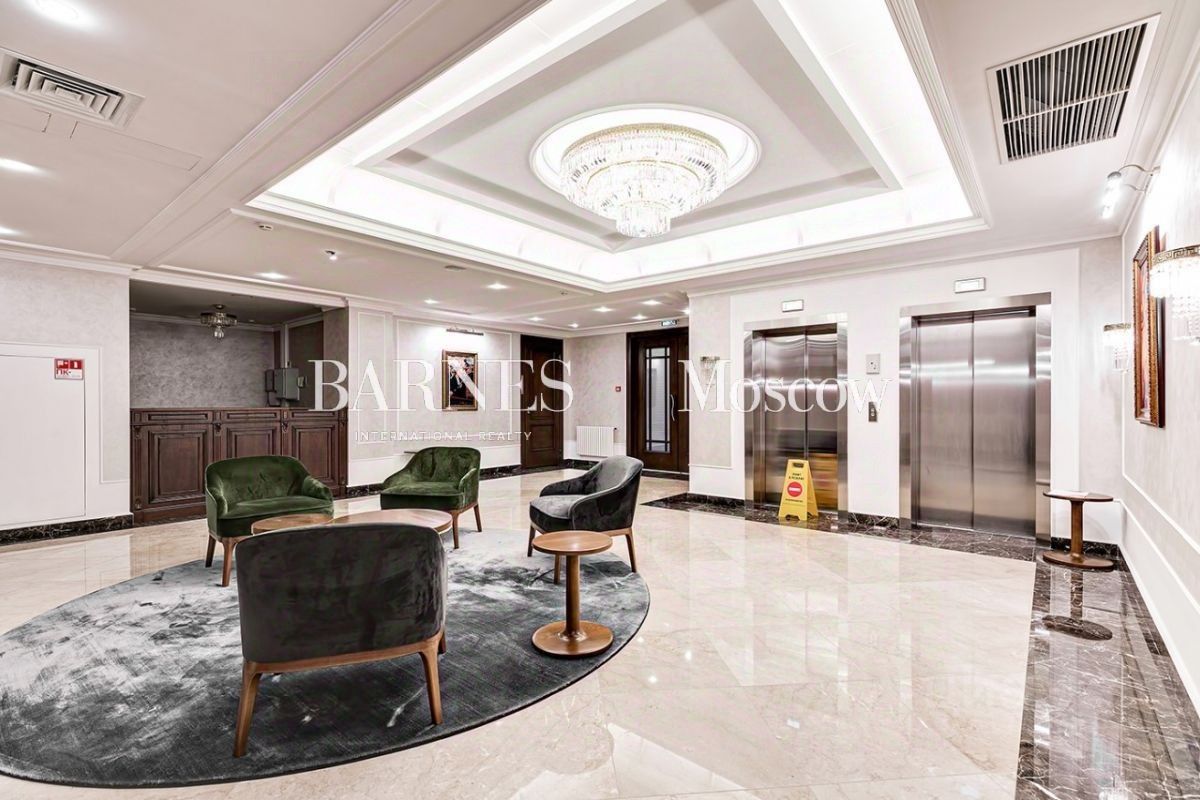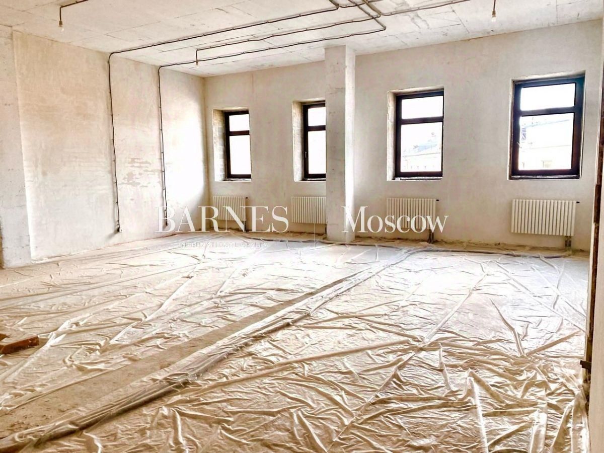 Апартаменты без отделки с возможностью разместить: просторную кухню-гостиную, 2 мастер-спальни с санузлами, кабинет или гостевую спальню, ванную комнату, гостевой санузел. Окна выходят на Мерзляковский переулок.