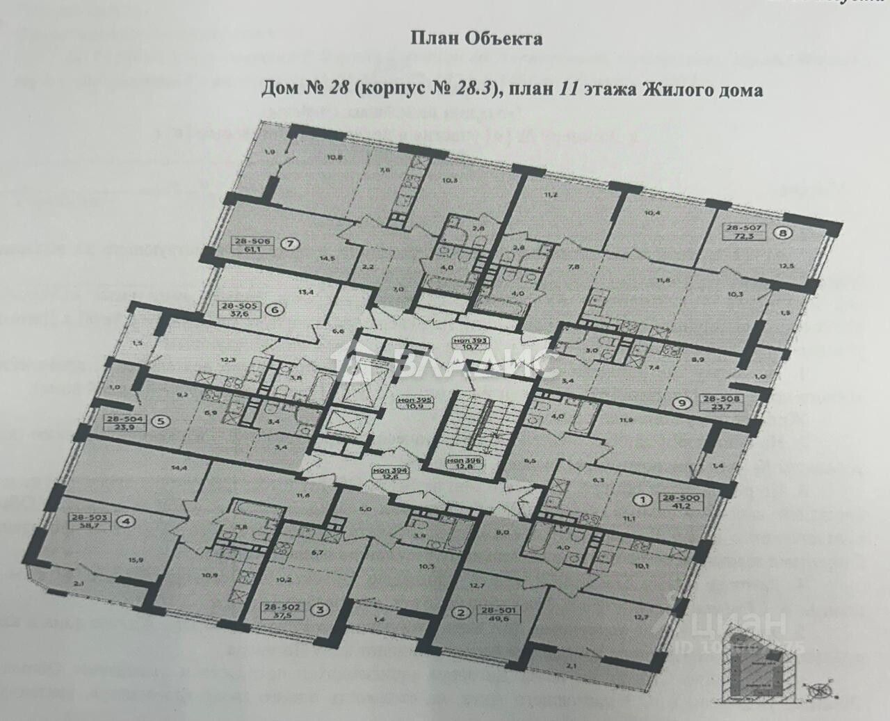 Описание объекта Квартира расположена на 11 этаже 17-этажного монолитного дома, построенного в 2025 году. Общая площадь квартиры составляет 37,5 кв. м, из которых 20,5 кв. м — жилая площадь, 3 кв. м — кухня.