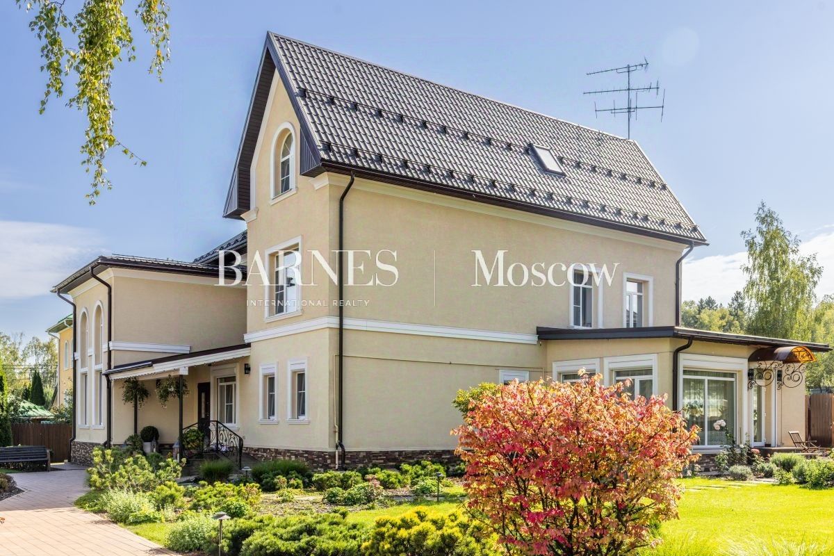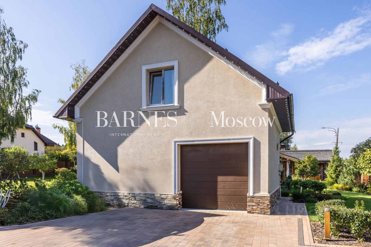 Гараж и технические зоны: Гараж на одно машиноместо с просторными зонами для хранения Над гаражом расположена отдельная студия, предназначенная для персонала или для использования как дополнительное пространство Перед гаражом есть вымощенная площадка, рассчитанная на размещение еще трех автомобилей Участок и обустройство: На участке выполнены ландшафтные работы, создан уникальный по красоте сад, где каждый элемент продуман для эстетики и уюта Рядом с домом расположена аутентичная русская баня, которая добавит уют и возможность для отдыха на природе Этот дом - отличный выбор для тех, кто ценит качество, эстетику и комфорт уединения в окружении природы, при этом всего в получасе езды от Москвы.
