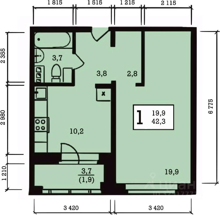 Общая площадь42,3 м2