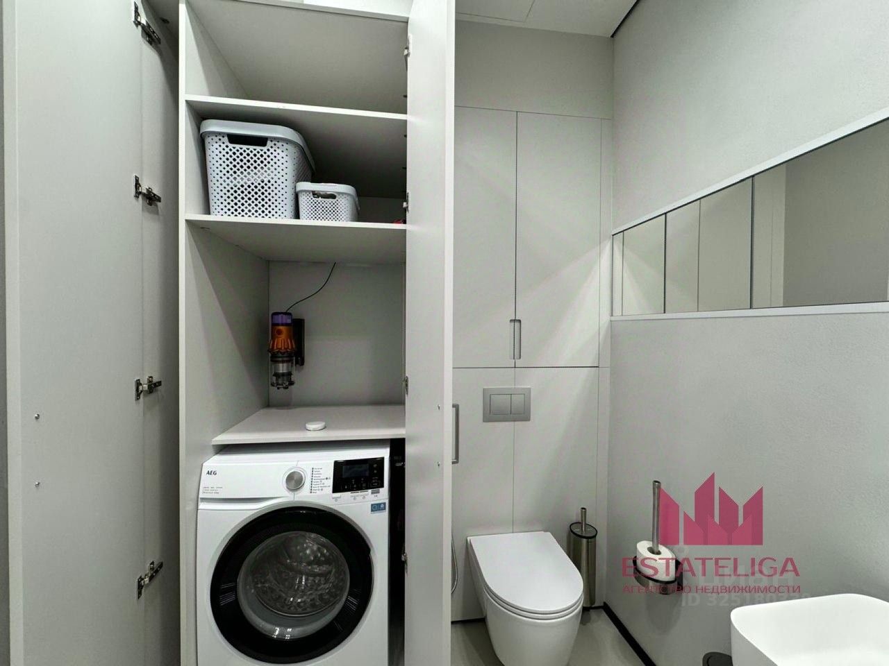 Площадь: 47.3 кв.м. Классическая евродвушка с изолированной спальней. Этаж: 7-й из 50. Хороший вид, много света. Ремонт: Качественный современный абсолютно новый ремонт. Использованы высокакачественные материалы. Отделка: Светлые стены, потолки, керамогранит, микроцемент. Кухня: функцианальный кухонный гарнитур, хорошо продуманные зоны хранения, встроенная техника (холодильник, духовка, варочная панель, вытяжка). Санузел: Совмещенный, с современной сантехникой, стеклянной душевой кабиной и системой ''теплый пол''. Техника: Приточно-вытяжная система по всей квартире, стиральная машина, вся необходимая мелкая техника включая пылесос Dyson.