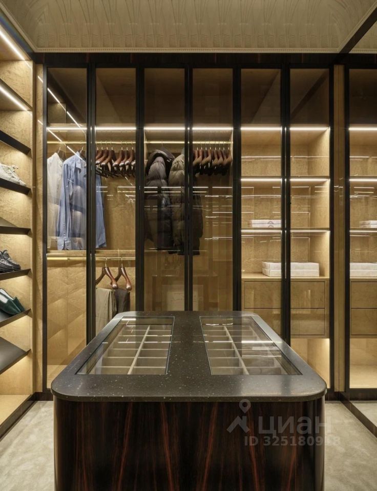 Спальня решена в формате приватного люкса. Санузлы выполнены на уровне luxury-отеля: натуральный камень, встроенная подсветка, премиальная сантехника. Две гардеробная с продуманной системой хранения и подсветкой. Постирочная.