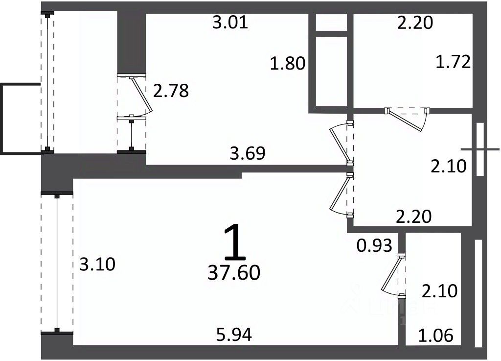 продам 1-к, Радиальная 6-я, 7/1 корп. 28 332 160 ₽