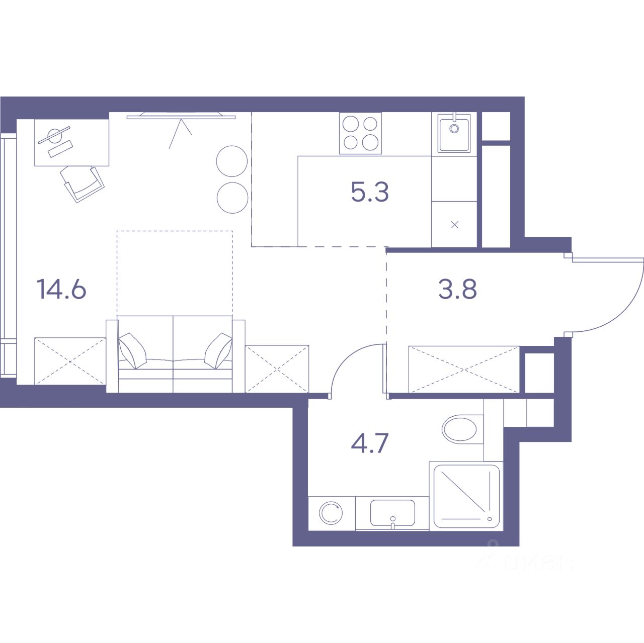 Жилая площадь14,6 м2