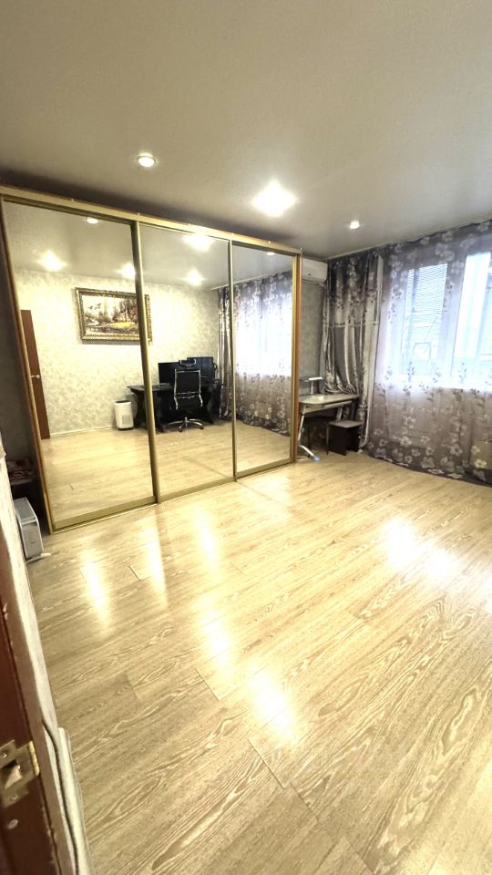 Квартира имеет просторную планировку, в наличии 2 большие лоджии, большая жилая комната 21,2 кв.м. и просторная кухня. Квартира продаётся в обычном состоянии, отличная перспектива для покупателя, который планирует сделать ремонт под свой вкус по своему проекту. В стоимость входит встроенная кухня со встроенной техникой и два шкафа-купе.