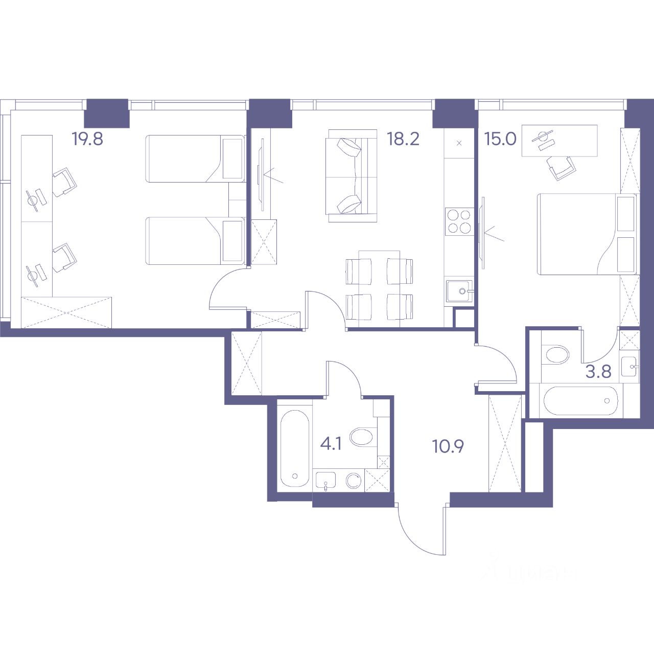 Жилая площадь34,8 м2