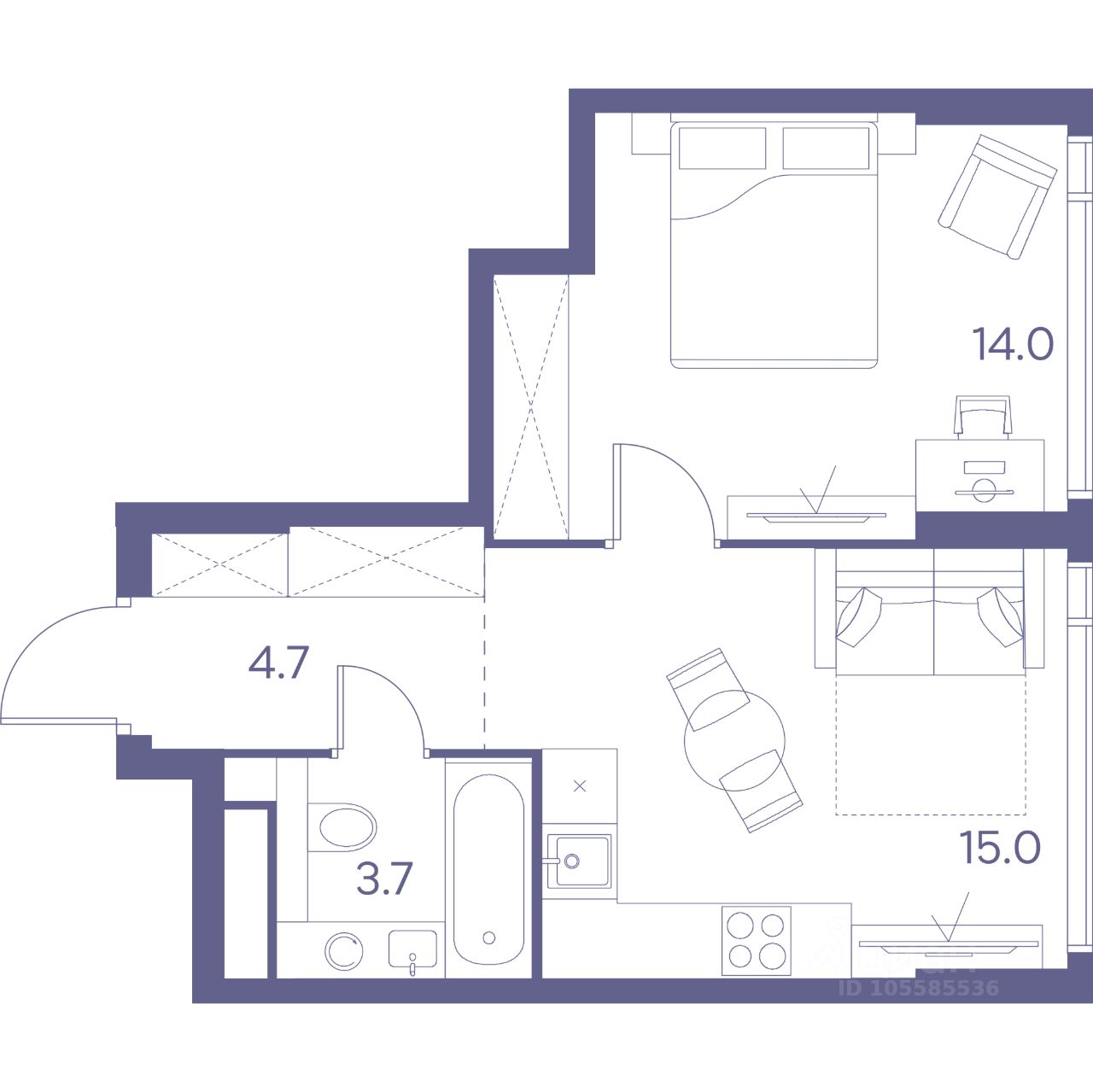 Жилая площадь14 м2