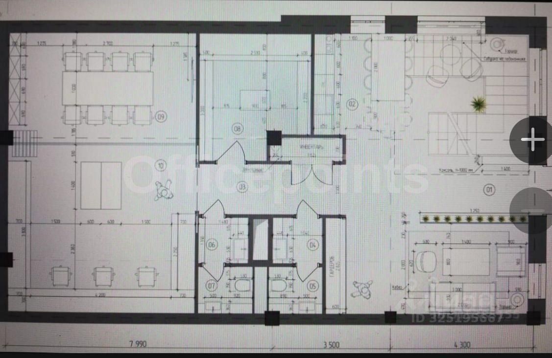 Помещение со стандартной офисной отделкой, смешанная планировка. Центральная система кондиционирования и приточно-вытяжная система вентиляции. В наличии наземная парковка.
