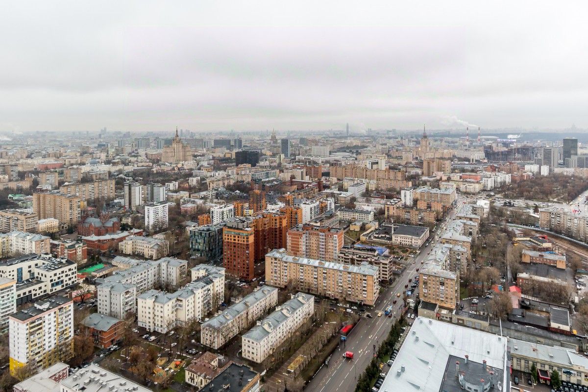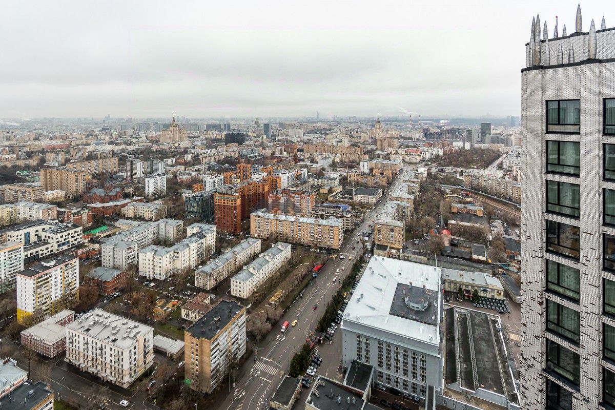 Панорамные окна выходят на юго-запад, благодаря чему в комнатах максимально светло и просторно. Из окон открываются виды на гостиницу Украина, Краснопресненскую набережную, МГУ, Воробьевы горы, ХХС, Кремль, Белый дом.