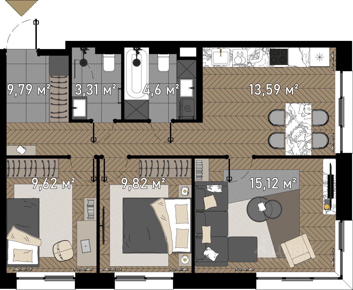продам 3-к, Зорге, 9а корп. 134 637 680 ₽