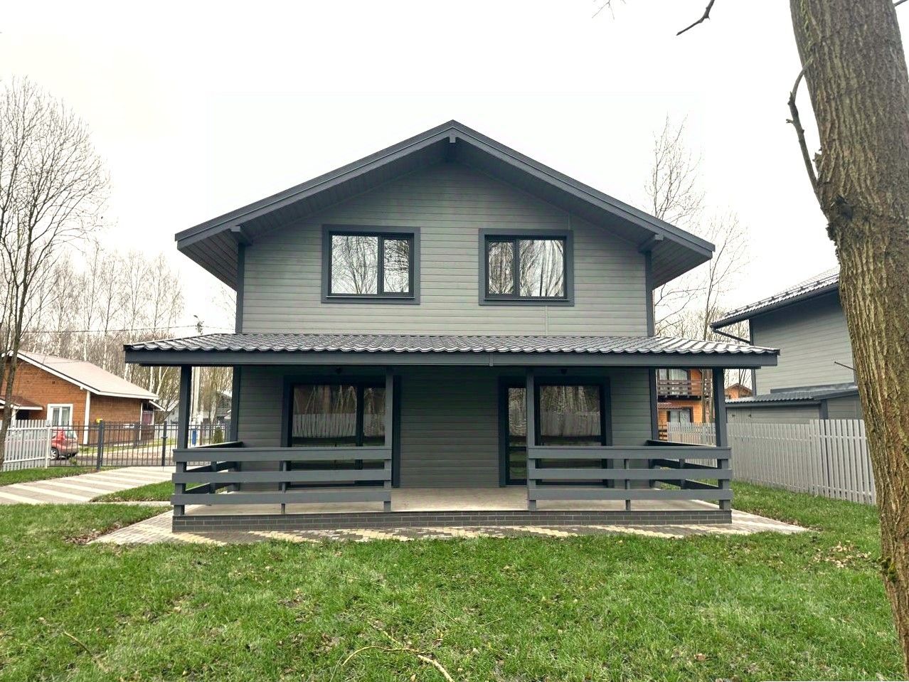 Коттедж с участком недалеко от Москвы с отделкой под ключ от застройщика. Дом очень теплый, подходит для круглогодичного проживания. Это лучший вариант дома в Подмосковье для семьи.