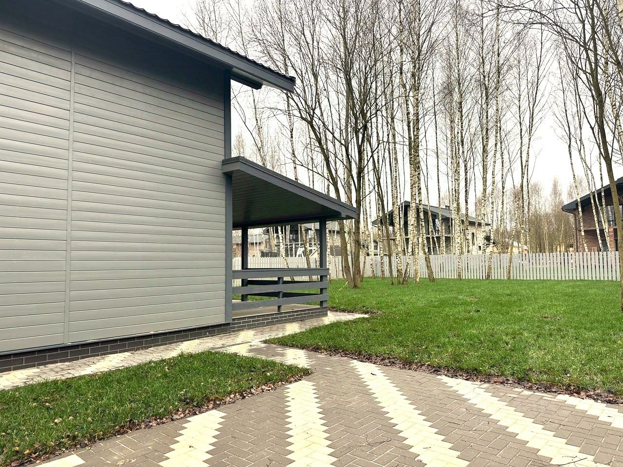 Продается загородный дом из бруса 123 м² в КП Севиан Форест, 30 км от МКАД. Это новый дом на земельном участке 7 соток (ИЖС) с забором по периметру в едином стиле поселка. На участке постелен рулонный газон, место для парковки автомобиля выполнено из брусчатки.