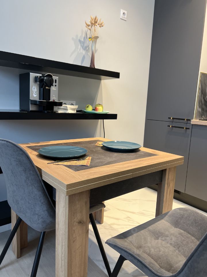 большое зеркало в прихожей ! кухонный стол раскладывается на большой по размеру .