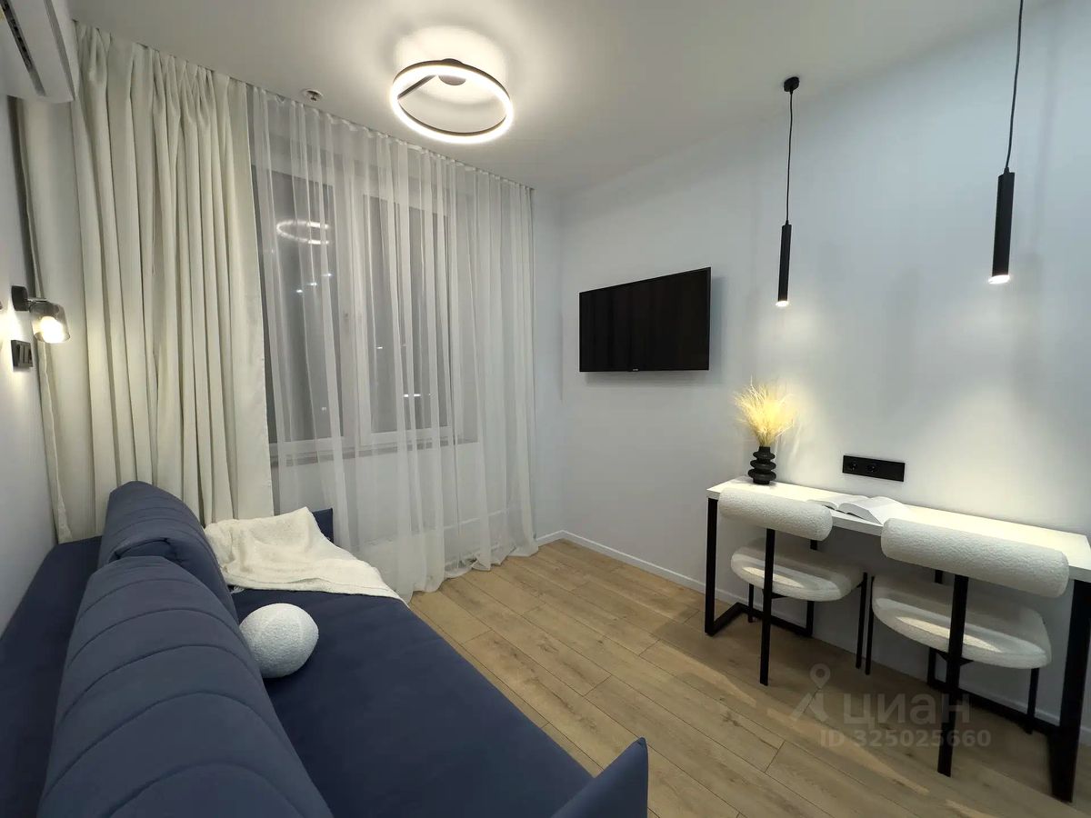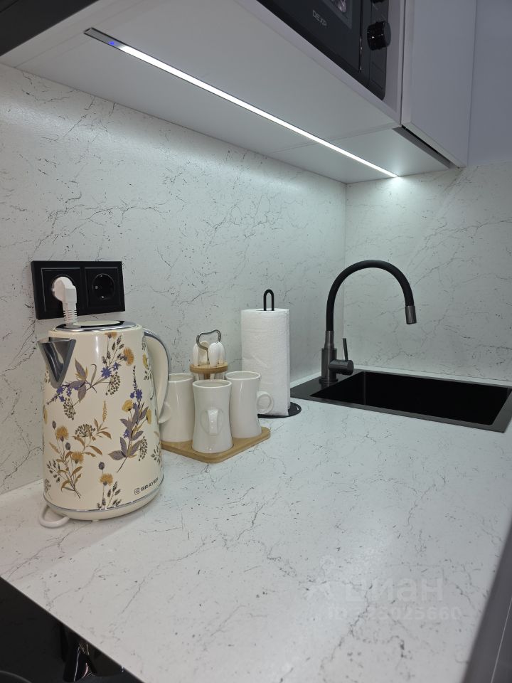 В студии выполнен современный дизайнерский ремонт в светлых тонах. Продумано до мелочей функциональное пространство, которое оснащено необходимой мебелью и бытовой техникой: - раскладной двуспальный диван - 2 вместительных одежных шкафа - полноценное рабочее место - Wi-Fi - кондиционер - телевизор - гладильная доска, утюг - кухонный гарнитур с техникой: - холодильник - варочная панель - вытяжка - микроволновая печь - чайник - набор посуды - ванная комната: - душевая зона - стиральная машина - сушилка для белья - электрический полотенцесушитель - гигиенический душ