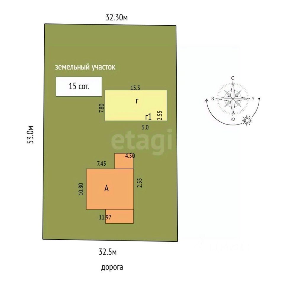 Участок расположен вдали от шумных дорог, граничит с полем и лесом, где можно собирать грибы и ягоды - идеальное место для жизни на природе.