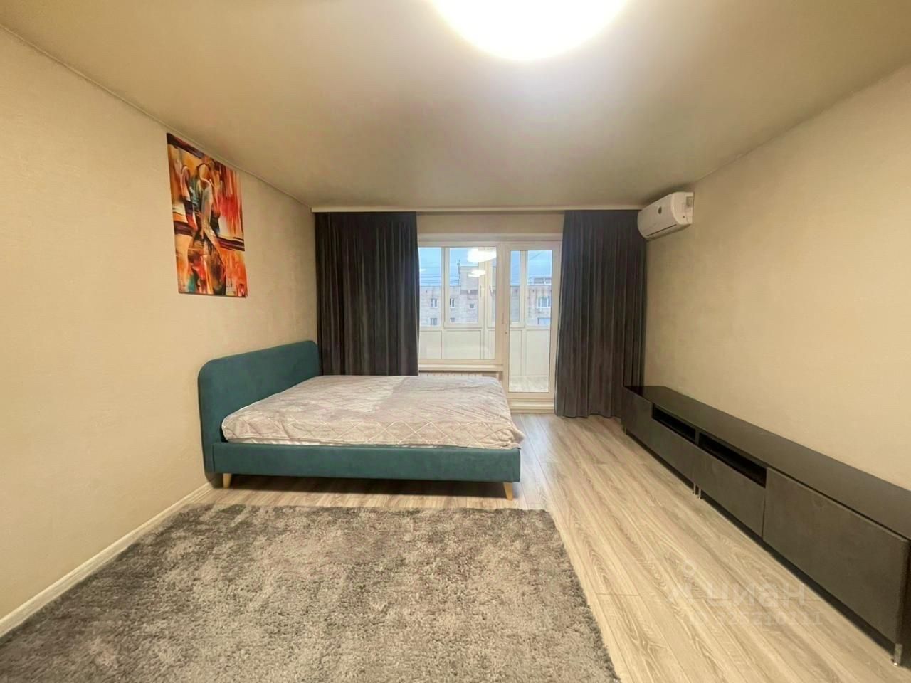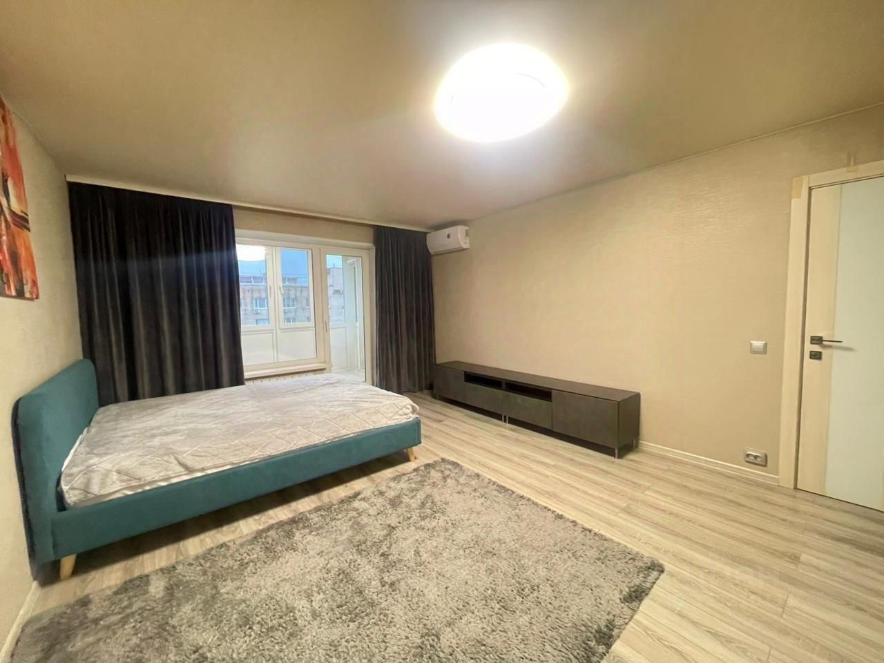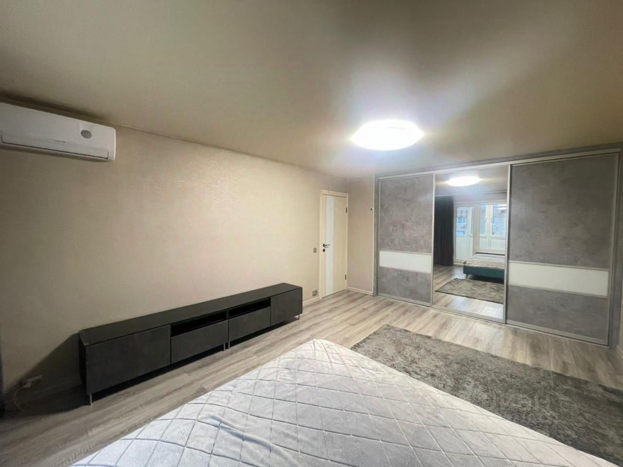 В квартире выполнен свежий евро ремонт. Просторная комната с большим шкафом купе сделанным на заказ и кондиционером.