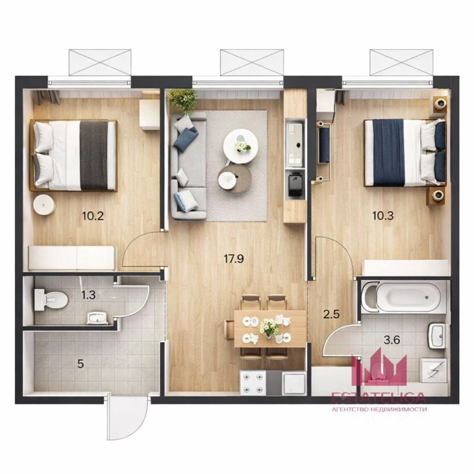 Id 59336. **Светлая двухкомнатная квартира с дизайнерским ремонтом на высоком этаже в современном ЖК ''Люблинский парк''**