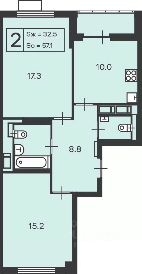 продам 2-к, Амурская, 1 корп. 116 992 960 ₽