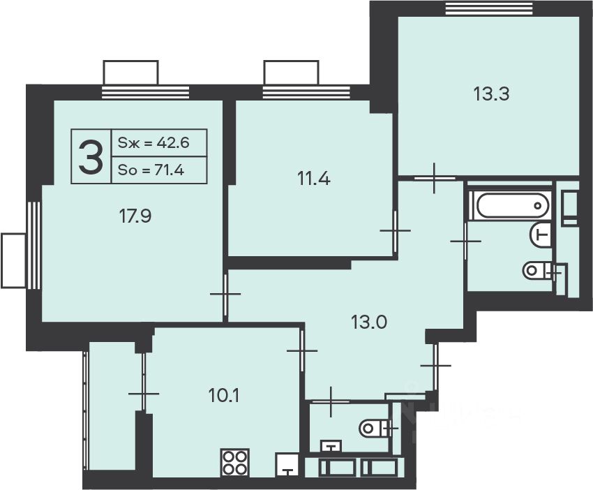 продам 3-к, Амурская, 1 корп. 119 827 780 ₽