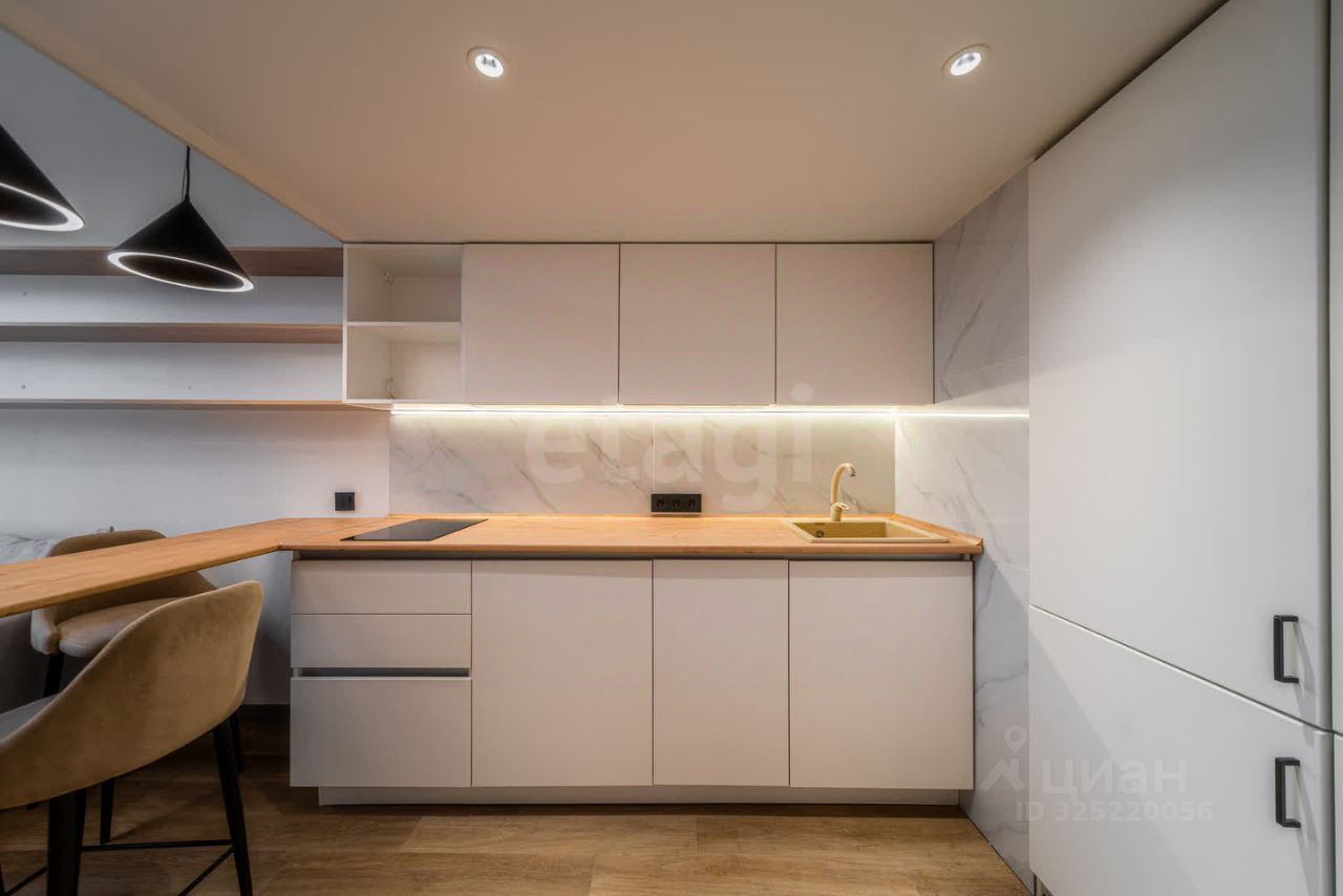 + стильная входная группа со встроенными шкафами для хранения + современная кухня с индукционной варочной панелью, посудомоечной машиной, встроенным холодильником и стиральной машиной.