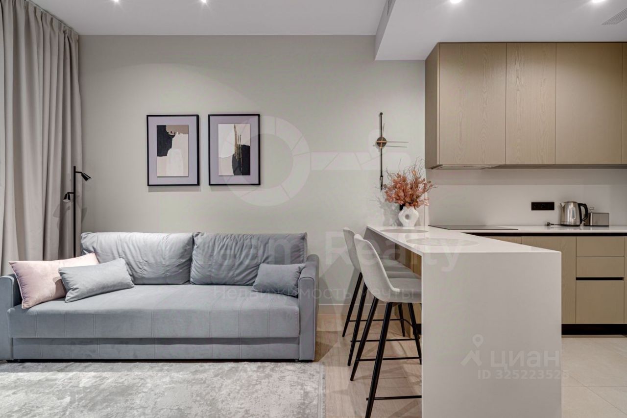Функциональная планировка: просторная кухня-гостиная, приятная спальня со встроенным шкафом и санузел с ванной. В квартире выполнен качественный дизайнерский ремонт в светлых тонах, легкая свободная атмосфера, новые техника и мебель. Окна панорамные в пол, открываются настежь. Кухня с кварцевой столешницей и бытовой техникой итальянского производителя Bertazzoni (варочная панель, духовой шкаф, посудомоечная машина, вытяжка, холодильник, морозильная камера). Центральное кондиционирование, приточно вытяжная вентиляция, умный дом, ТВ, стиральная машина, пылесос. Проведен интернет. Дом обжился, комфортная обстановка для проживания.