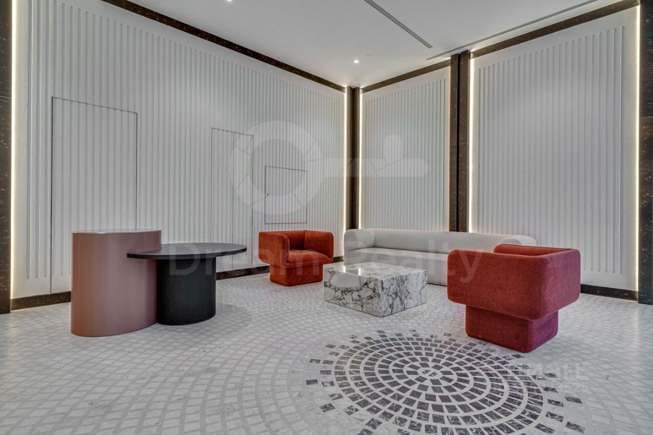 На 1м этаже - шикарное лобби высотой 5 м с диванчиками, колясочная, туалет. Ухоженный закрытый двор, ресепшн, вход в Surf Coffee прямо с территории дома. Есть возможность арендовать м/м в подземном паркинге.