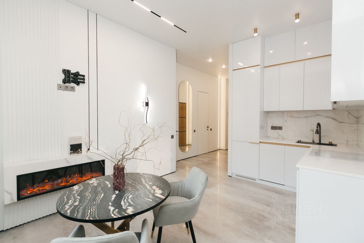 **Особенности квартиры:** - Современная полностью оборудованная кухня-гостиная с посудомоечной машиной, фильтром для воды - Комфортабельная спальня с большой кроватью 180 х 200 , шторы блек аут - Санузел с белоснежной ванной - хорошая шумоизоляция - множество разных видов подсветок - теплые полы - электрокамин - Wi-Fi и климат-контроль для вашего удобства - система Умный дом (управление светом, климатом, электрокарниз и пр)