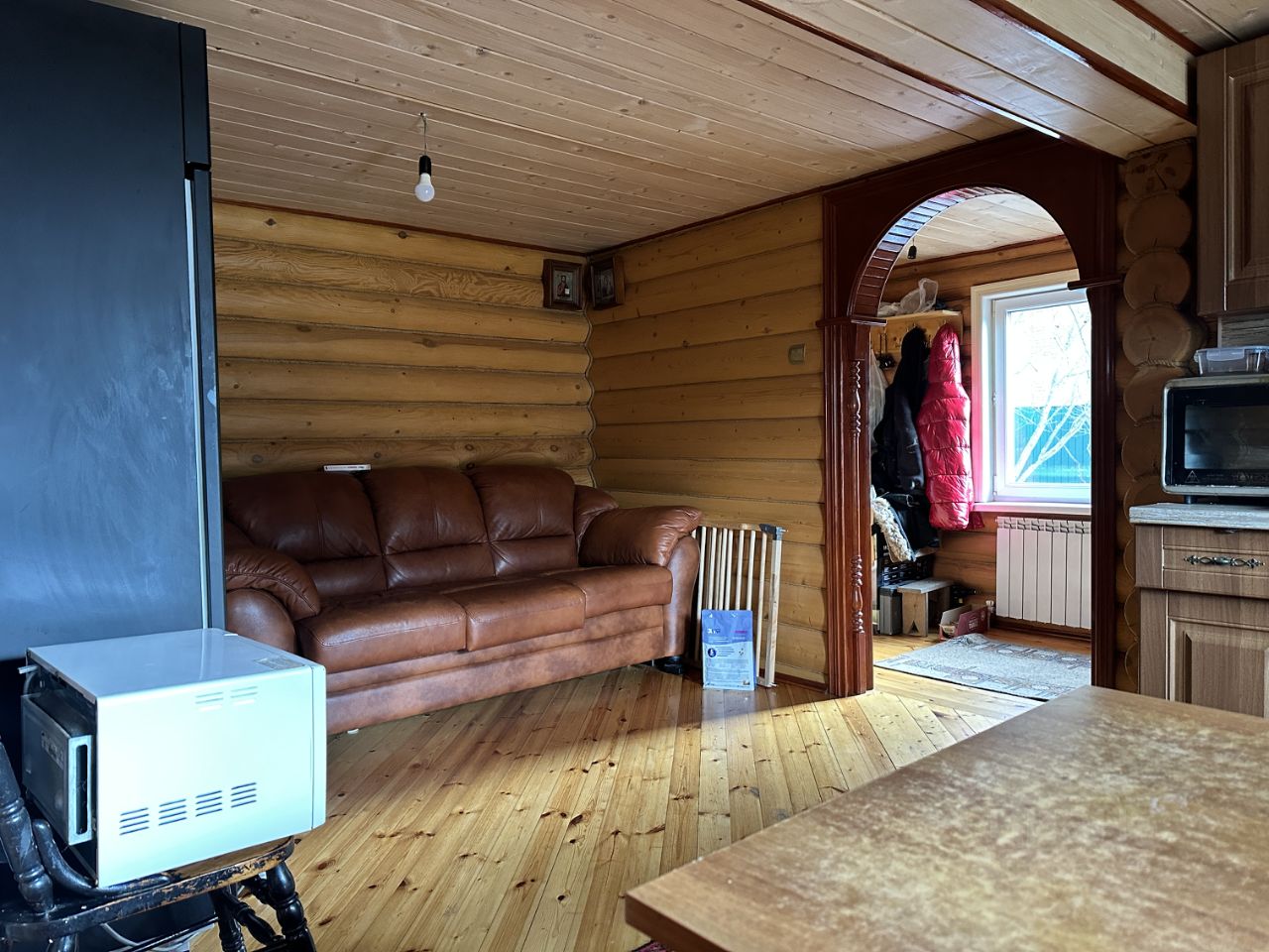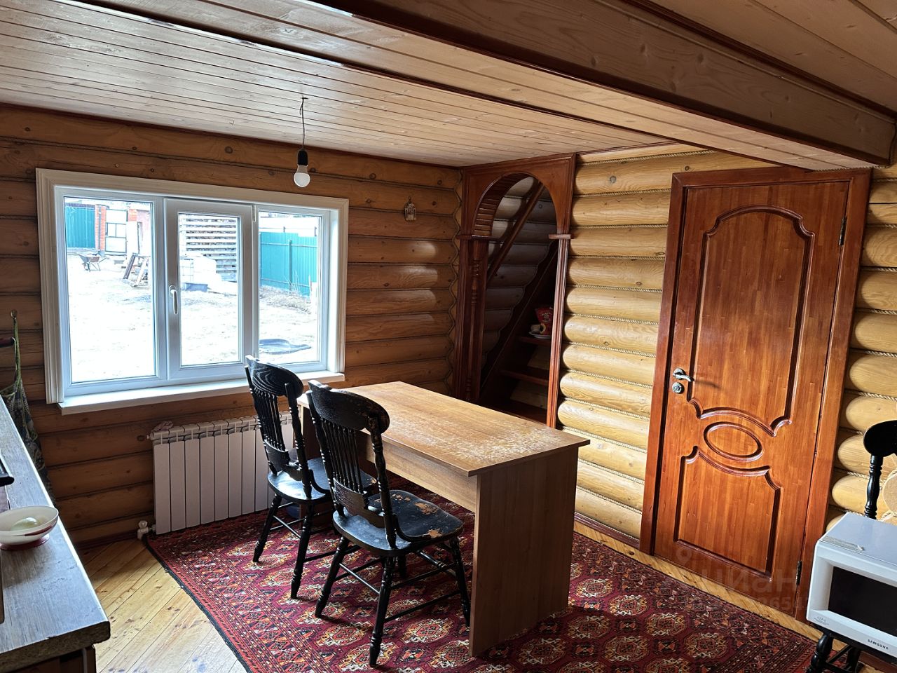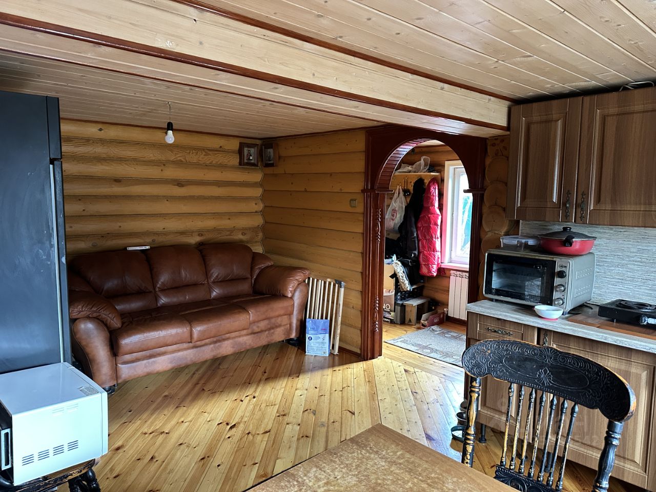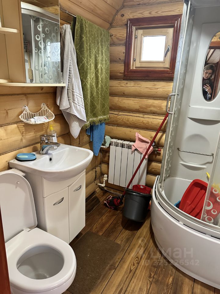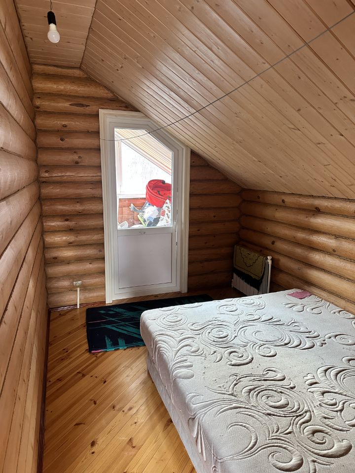 2-х этажный жилой дом из оцилиндрованного бруса 2011 года постройки, полностью готовый к постоянному проживанию, общей площадью 100 кв.м. Дом отделан вагонкой. На первом этаже кухня-гостиная, санузел с сауной. На втором этаже - 2 спальни, одна из которых с лоджией. В доме есть электричество, горячая и холодная вода, канализация - септик. Электричество - 15 кВт, вода - колодец (5 колец). Все коммуникации работают исправно. На участке есть летняя кухня с душем.