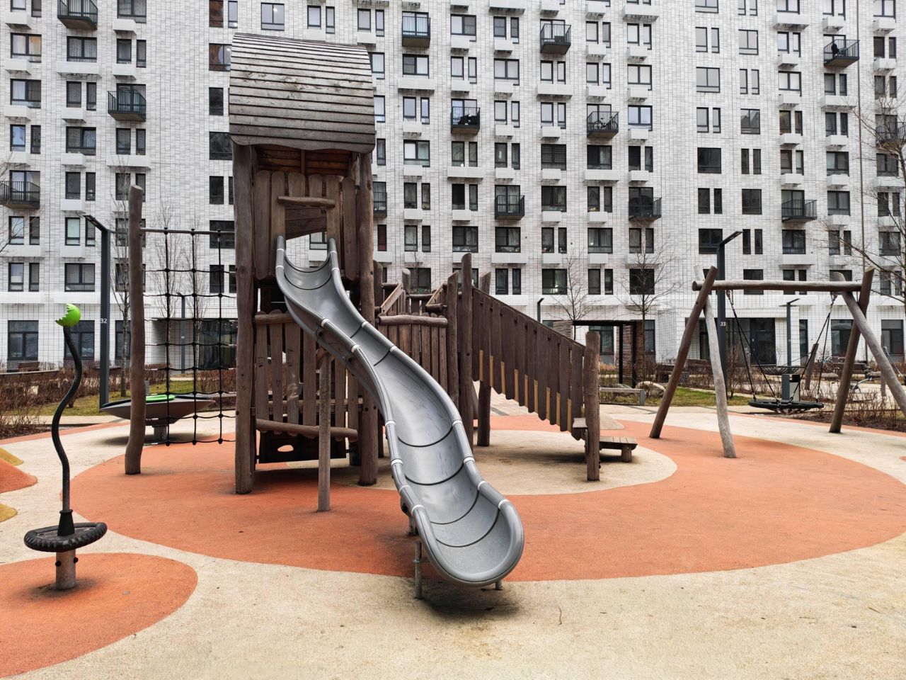 -ЖК с концептом двор без машин позволяет комфортно располагаться на закрытой территории с детскими и спортивными площадками, рядом есть многоуровневый паркинг.