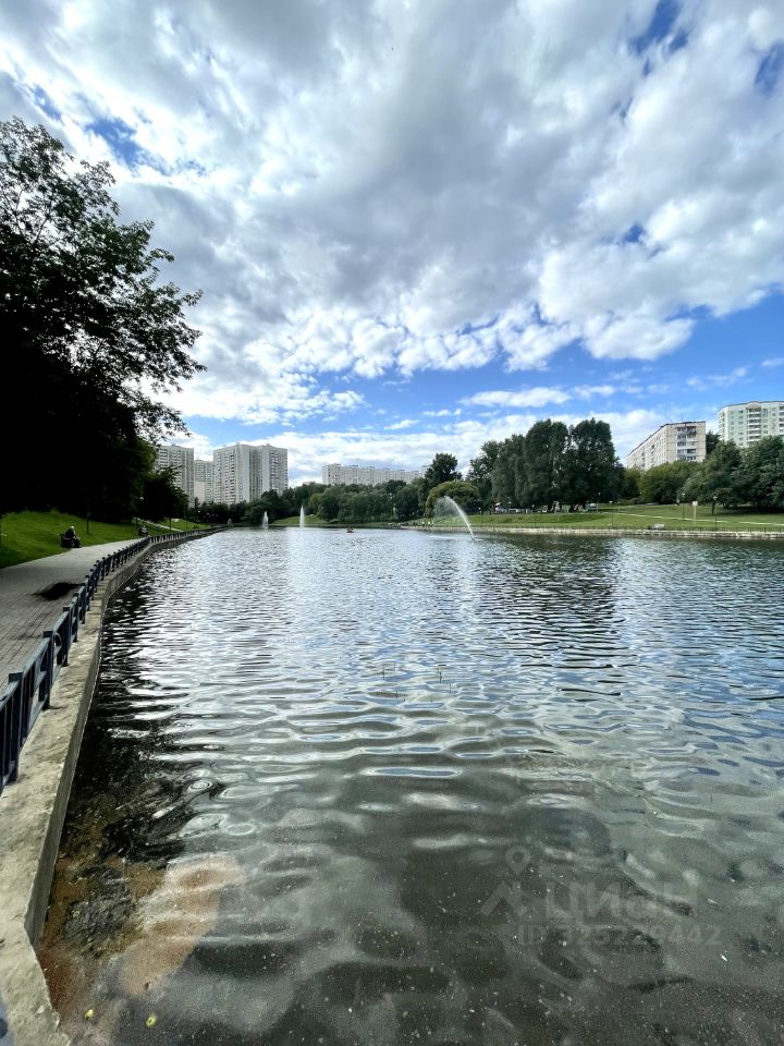 Окна выходят в тихий двор и на пруд с фонтаном рядом с домом, где приятно погулять и расслабиться в свободное время..
