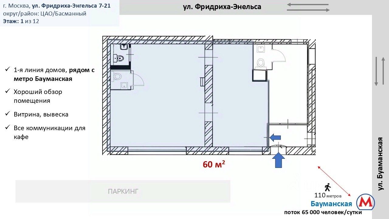 Помещение рядом с метро Бауманская. (пассажиропоток станции 80 000 чел/день)