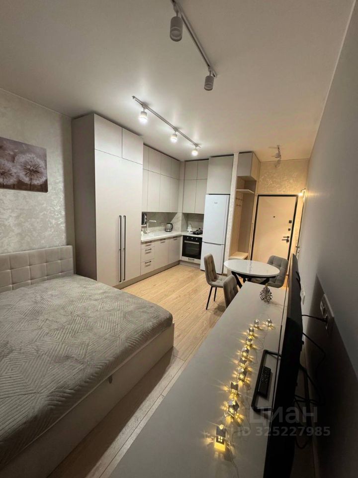 Площадь: 25 м² Этаж: 3 (всего в доме 8 этажей) Планировка: студия (кухня-гостиная совмещены) Санузел совмещенный Окна/Вид: панорамные, во двор Балкон: большой Мебель и техника: полностью оборудована и меблирована (кровать, шкаф, стол, стулья, холодильник, стиральная машина, плита, вытяжка, телевизор, Wi-Fi, кондиционер). Ремонт: современный, дизайнерский.
