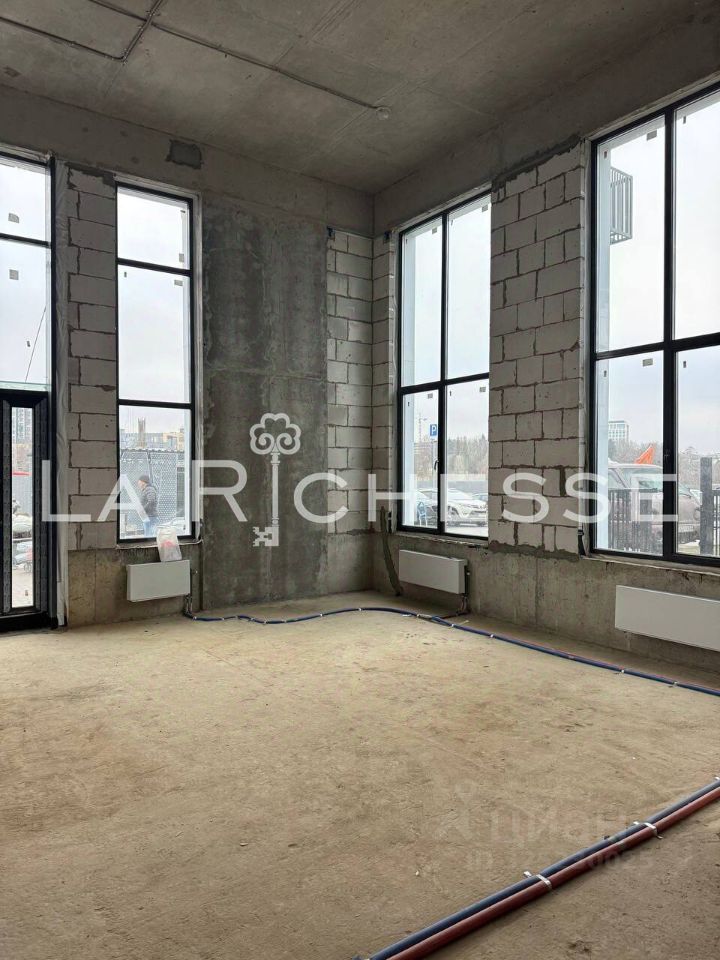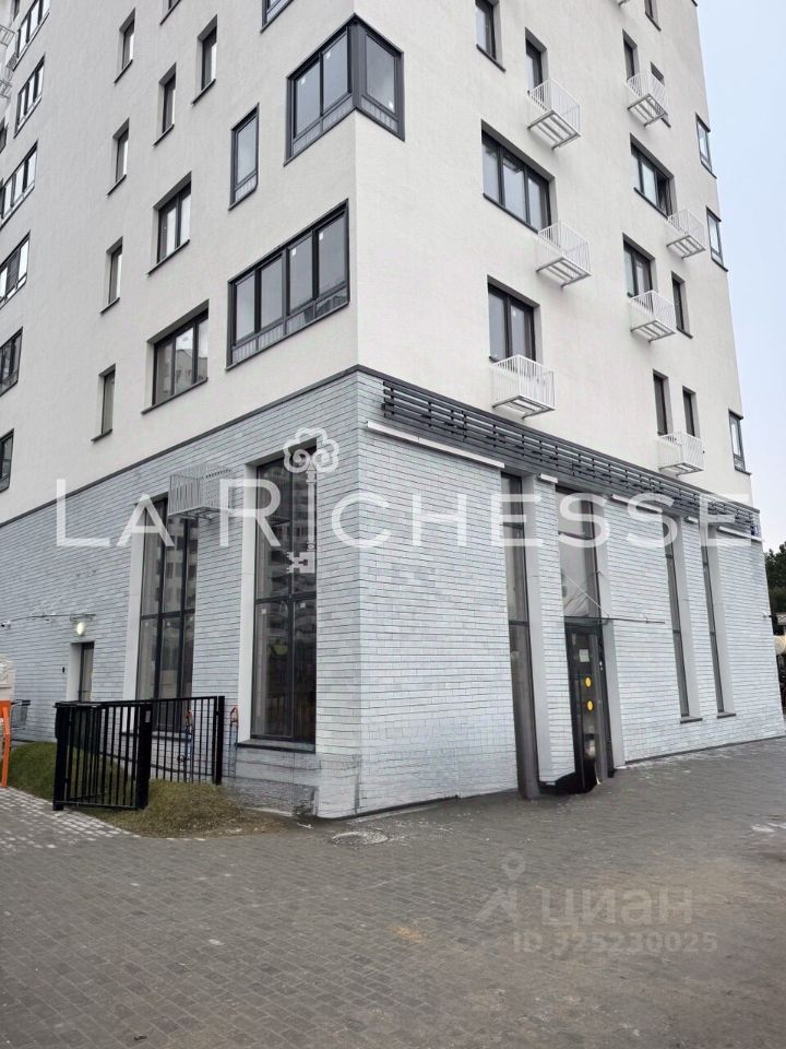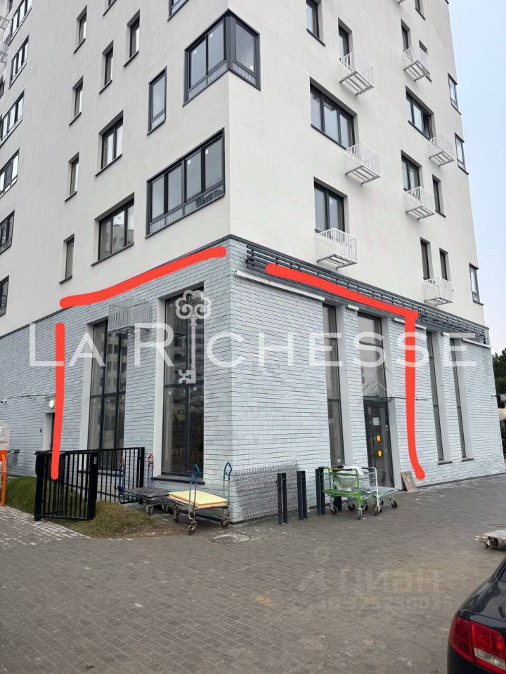 Помещение на углу здания с панорамными окнами, которые выходят на улицу и на двор.
