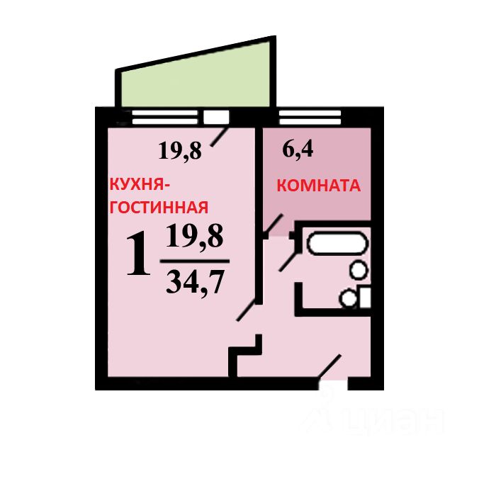 Квартира с функциональной планировкой, линейная, окна смотрят на улицу. Имеется лоджия, 1 изолированная комната площадью 6,4 кв.м. и большая кухня-гостиная площадью 19,8 кв.м. Квартира жилом состоянии, ремонт выполнен из качественных строительных материалов, совмещенный С/У, оборудован качественной сантехникой, установлены приборы учета на горячее и холодное водоснабжение.
