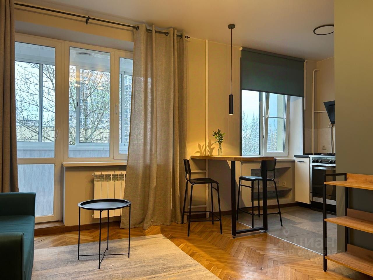 Прекрасная квартира-студия после косметического ремонта. Есть вся необходимая мебель и техника. Дом расположен в двух минутах от метро! Прекрасный зеленый район, с развитой инфраструктурой. Магазины, кафе, школы и детские сады рядом. Показы по договоренности.