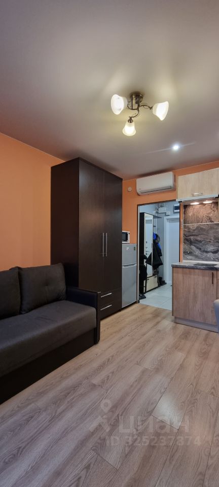 Сдаётся уютная студия в современном доме 2022 года постройки. Квартира расположена на 4 этаже 33-этажного здания. Общая площадь — 20 кв. м, жилая — 14 кв. м, кухня — 3 кв. м. Высота потолков 2.65 м. Окна выходят во двор, что обеспечивает тишину и спокойствие.