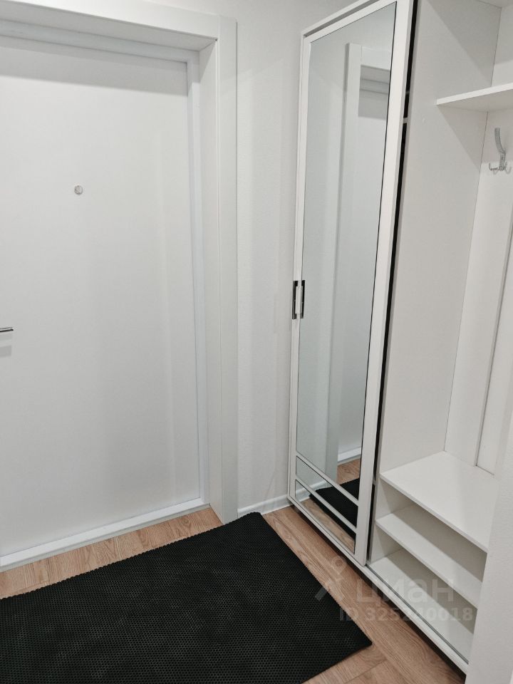 Планировку смотрите на фото. Большая кухня гостиная (18м2) с диваном, и отдельная спальня с большим шкафом для хранения вещей.